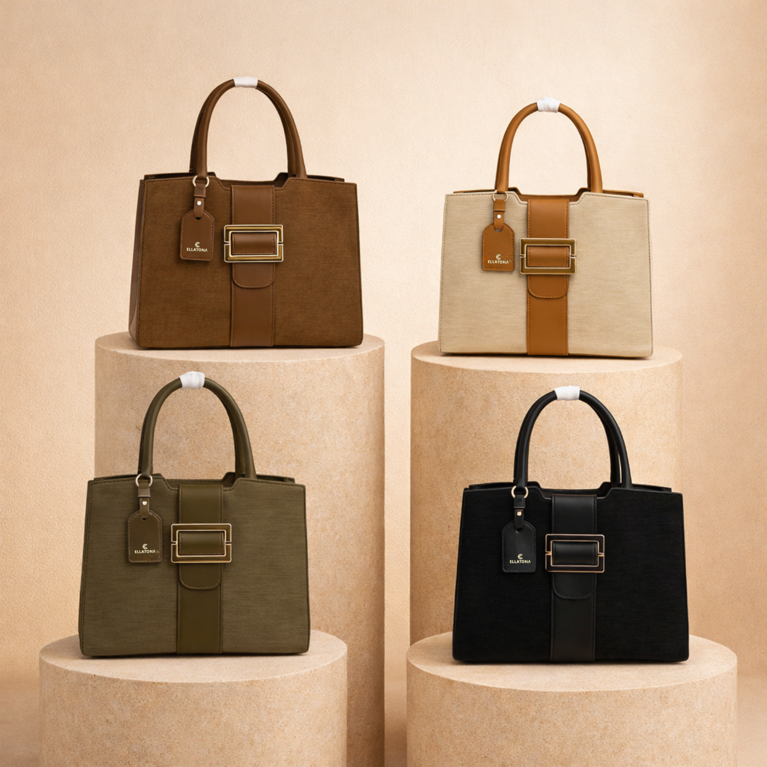 The ELLATONA Women’s Structured Tote Handbag is designed for everyday functionality with a refined and structured look. Its firm shape helps the bag stay upright and organized, making it suitable for office use as well as daily routines. The bag features a 3-compartment layout, including a center zip compartment for secure storage and two side compartments for easy access. This setup helps keep your essentials well-organized throughout the day. It comes with sturdy top handles for comfortable hand carry and a detachable shoulder strap for added convenience. The front design includes a buckle-style detail with a matching tag, giving the bag a minimal yet polished appearance. With its medium size, the bag is suitable for carrying daily essentials such as phone, wallet, small notebook, and personal items.